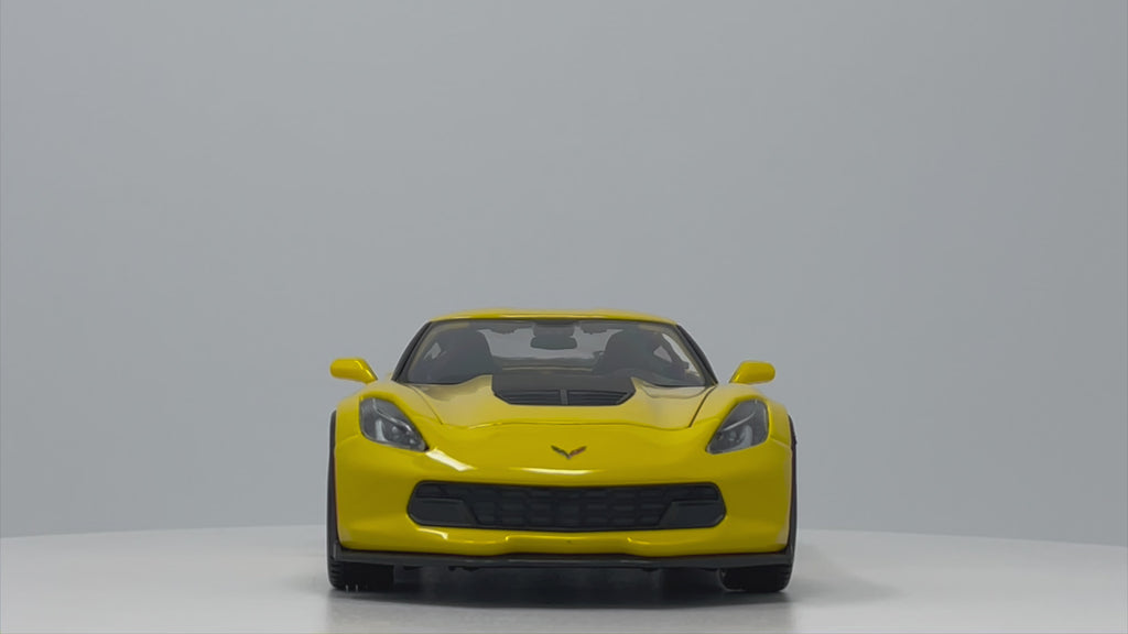 2015 Chevrolet Corvette C7 Z06 - Maisto 1:24 DiecastColor: YellowPackaging: Window BoxDimensions (Approx.): 7"L x 3.5"W x 2.25"HBox Dimensions: 9"L x 4.5"W x 4"H
