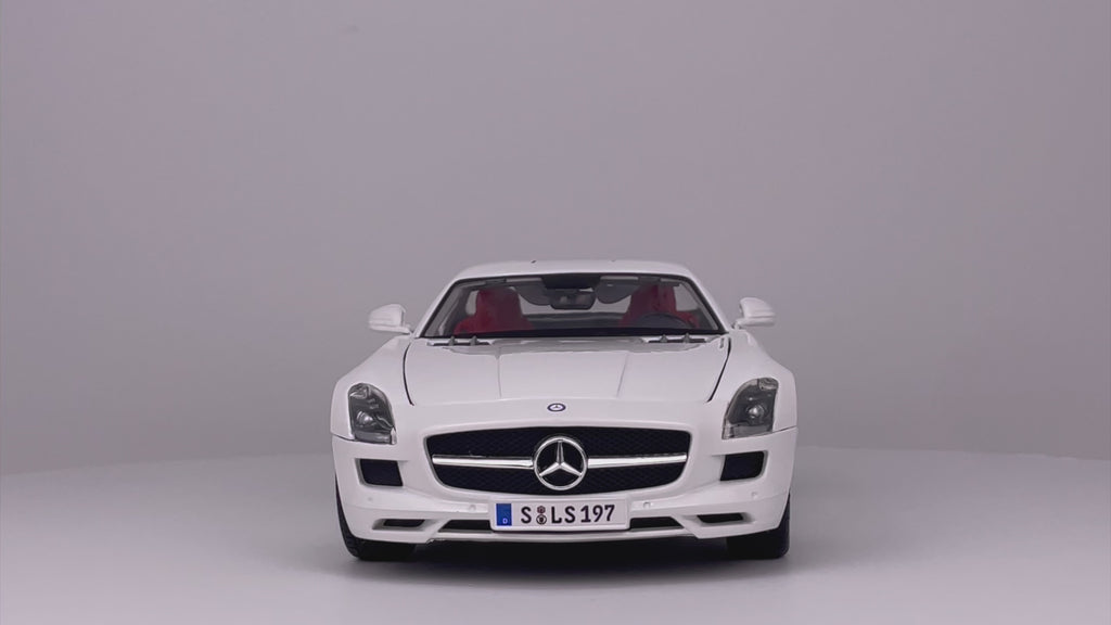 Maisto’s 1:18 scale diecast captures the SLS AMG in miniature with meticulous detail. Finished in White, it features accurate body contours, realistic wheels, and a detailed interior reflecting the driver-focused cockpit of the full-sized supercar.